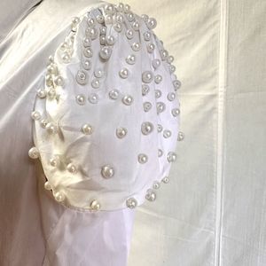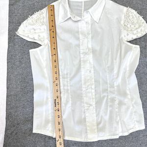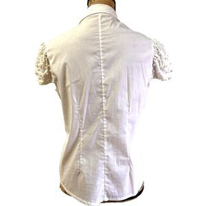 Zucchero Womens Shirt SZ 38/M White Pearls Embellished Cap Sleeves Snap Buttons