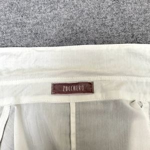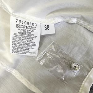 Elevate your wardrobe with this stunning Zucchero blouse. The cotton blend fabric with a plain weave is lightweight and perfect for summer, fall, and spring. The white blouse features a collared neckline with snap buttons for closure and cap sleeves with pearl accents that give it a feminine touch.