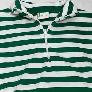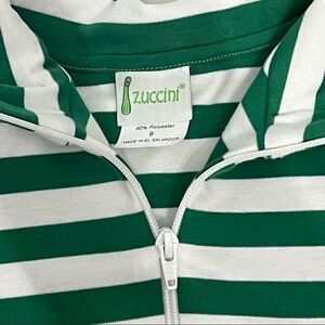 Zucchini Boys green and white preppy striped polo with zipper at neckline size 9