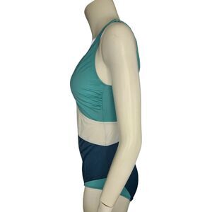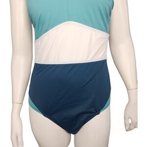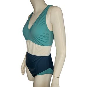 Zuda Colorblocked V-Neck One Piece Womens Swimsuit Teal Blue Size 8 NWOT