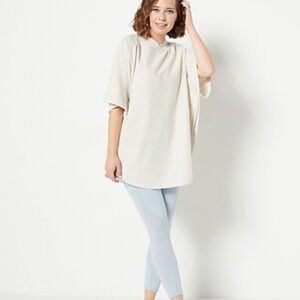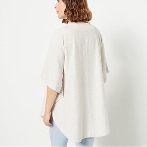 French terry fabric and a poncho. Separately, they're wonderful; but mixed together? They make for a divine piece of clothing. Whether you throw it on as you lounge on the couch or match with a chic pair of jeans as you go out to slay the day, it's a look that's comfortably stylish. From zuda.