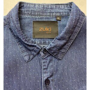 Zuiki Man Shirt Mens XL Slim Fit Chambray Polka Dot Lightweight Made in Italy
