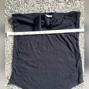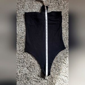 Stylish black bodysuit featuring a tie front design. Perfect for versatile styling.