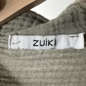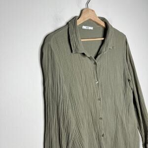 Zuiki Top Women Medium Green Gauzy Cotton Button Up Lagenlook Casual Lightweight