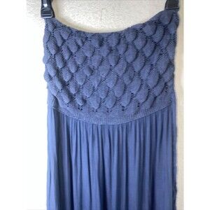 Purchased in Italy, zuiki blue strapless lightweight knit top with a feather scallop knit layer pattern on top and a tie strap on back .