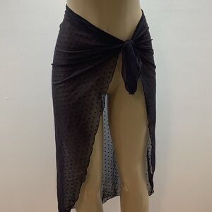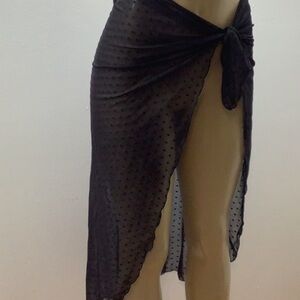 Elevate your beach look with this elegant black sheer swim sarong. Perfect for adding a touch of sophistication to your swimwear ensemble. Zuliana 2pc Black Sheer Mesh Swim Sarong With Dots Design Set. Made in USA