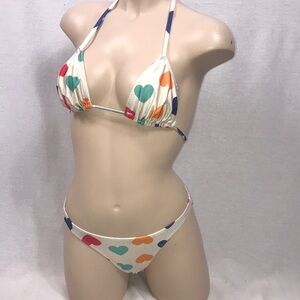 Zuliana Heart Print Brazilian Cut Triangle Top Bikini Set New With Tags