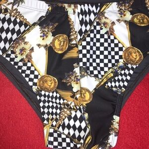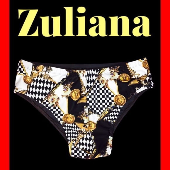 Zuliana Men’s Bikini. Nice and Sexy. Be Unique. Unique front print with solid dark grey back. Elastic Waist.