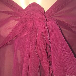 Zuliana Ruffle Mesh Sarong Made in USA. Lettuce trim ruffle tie sarong. Can be worn with the knot to the front or to the side. Burgundy Color