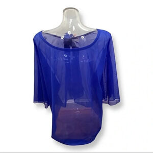 Zuliana blue mesh flowy sleeve sheer top size L/XL. Side of top is stitched closed. New With Tags.