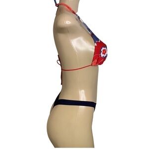 Zuliana ribbed thong bikini bottom with Recco floral halter style triangle bikini top.