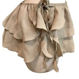 Zuliana Size Small Beige Ruffle Side Tie Skirt. Made in USA. New With Tags