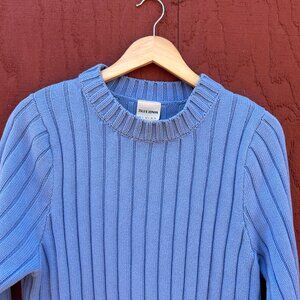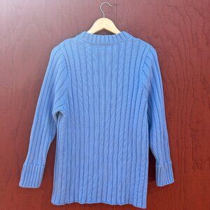 Elegant light blue sweater with ribbed design. Great condition. Crew neck style, heavy knit for chilly beach nights.