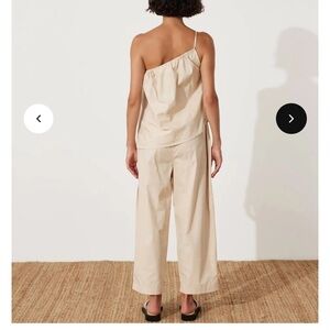 The Stone Organic Cotton Pant by Zulu & Zephyr features a wide full-length leg with unique split detailing at back ankle, and a tailored high-waisted fit, in a creamy lightweight cotton.