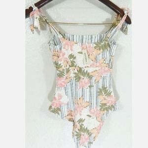 Item: Women's Reversible Tie Strap Floral and Striped One Piece Bathing Suit