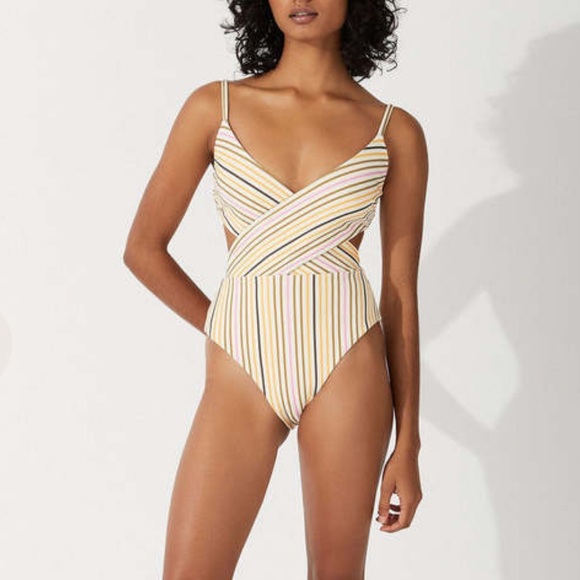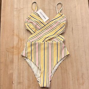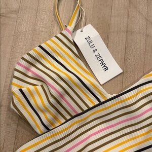 Zulu & Zephyr Stripe One-Piece NWT, size 4, yellow pink brown stripes on cream color