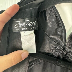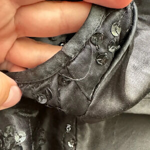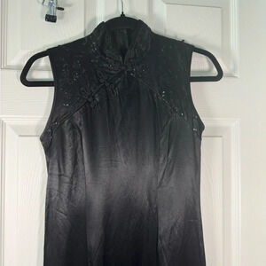 Zum Zum by Niki Livas Asian Inspired Mock neck Sequin Satin Black Dress Size 5-6