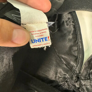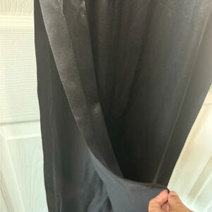Vintage formal satin dress by Zum Zum Asian inspired features a mock neck with a faux knot toggle button closure across the front, sequin design on top bodice, back zipper closure, mid length slits on both sides on the dress, steamed cleaned, some discoloring in the under arm hem.