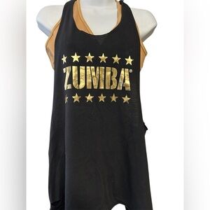 Zumba Fitness Black and Gold Women's Tank Top and Gold Bralette, Size L, GUC