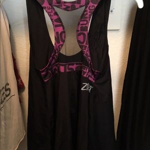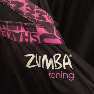 This is a GREAT Zumba/workout shirt. It was well-loved. It's in like-new condition and size MED. This tank top is very flowy at the bottom- perfect for Zumba!