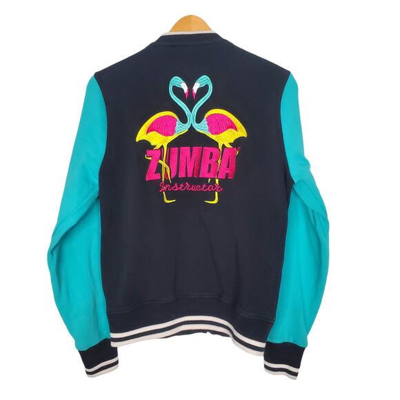 Zumba Wear Instructor Varsity Jacket Black Choose Happiness Flamingo Size Medium