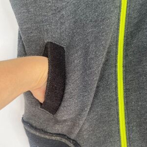 Mock neck, sleeveless, full zip, front pockets, new with tags, raw edges