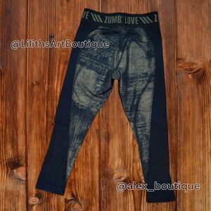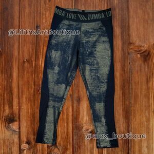 Zumba Love Panel Crop Capri Leggings Bold Black Gold Foil Size S (E008)