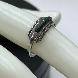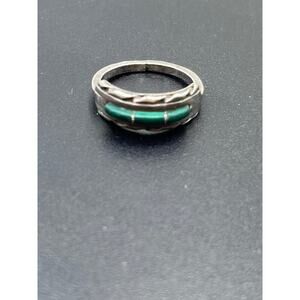 Zuni C L Panteah Signed Vintage 925 Sterling Inlaid Malachite Ring