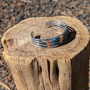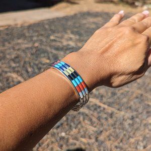 Discover the Timeless Elegance of our Zuni Native American Sterling Silver Multi Stones Inlay Bracelet