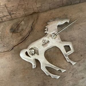 Zuni Inlay Horse Pin Brooch Tiger Eye, Onyx, Jasper, Sterling Silver