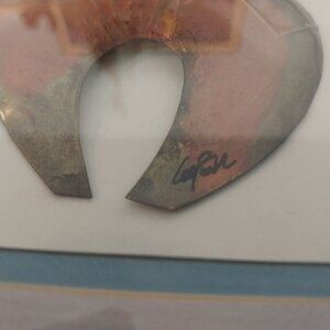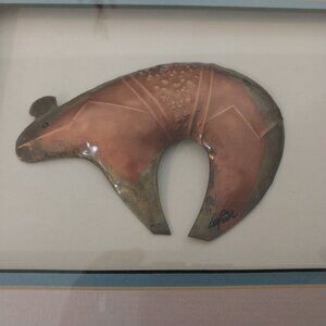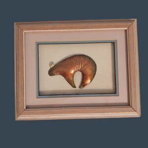 Zuni Inspired Fetish Bear Copper Brass Metal Sculpture Framed Signed