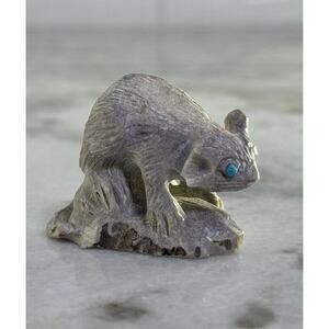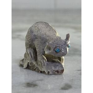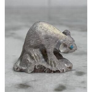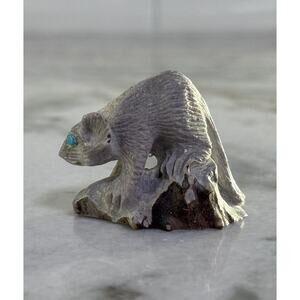 Zuni Max Laate signed carved antler fetish. Measures just over 1.5 inches tall by approximately 1.5 inches long. Unique carved details with turquoise eyes. Very well cared for unique estate find. (#926)