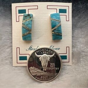 ❤️ Zuni Mojave Turquoise & Lab Opal Inlaid Earrings 925 Native Signed “8M”