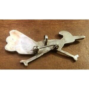 Zuni Native American Sterling Silver Turquoise Coral Roadrunner Brooch Pendant. Signed on back V. L. 2.25"X1"