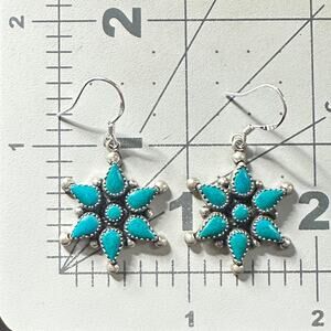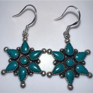 Zuni Native vintage 925 sterling silver genuine turquoise hook drop earrings