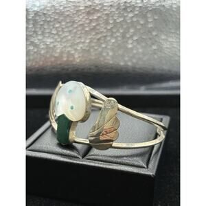Zuni Sterling Silver Mushroom Malachite Mother Pearl Cuff Bracelet W17