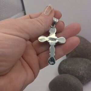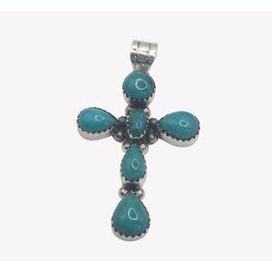 Zuni Style Sterling Silver Turquoise Cross Pendant Handmade Statement Unisex