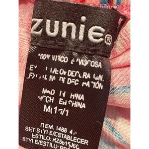 Zunie Girls Dress Medium 10/12 Pink Blue White Stripe Ruffle Sleeve Square Neck
