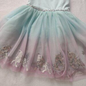 Zunie Girls Unicorn Ombre Tulle Dress 4 Sequins Green Blue Purple Party Wear