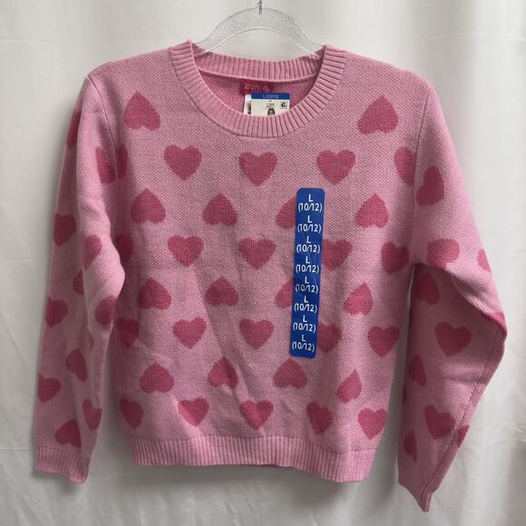 Zunie Girls Valentines Day Sweater Size Large (10/12) Pink Hearts