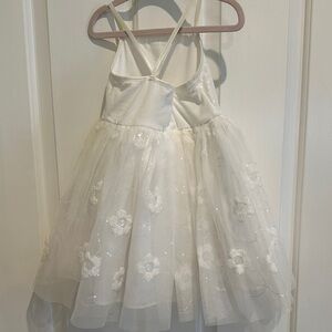 Charming kids dress with a sequin bodice. Features a floral tulle skirt. Ideal for formal occasions.