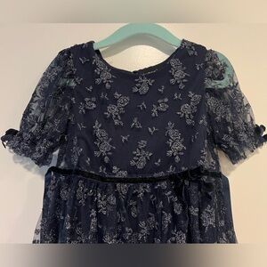 Zunie- from Nordstrom- kids navy dress with tulle and sparkle flower detail. Velvet bows at arms and waist