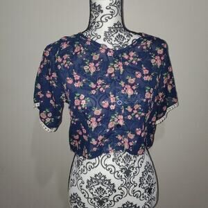 Zunie size 8 floral sheer crop top with crochet detail. 100% polyester. Measurements included in photos.
