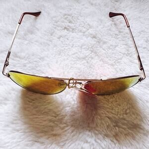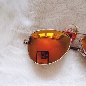 These glasses comes with a fabric pouch and eyeglasses cloth wipe. Some reflections may be pictured due to the mirrored lenses - they are not flaws to the product. The sunglasses provides UV400 protection.