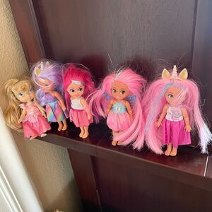 Including a cute little Disney Rapunzel Doll. The dolls look like they have crazy hair and they do but it’s not ratty. Dolls are in really great shape! Four Zuru Sparkle Dolls. Two have wings! 1 Disney doll. Clean home!