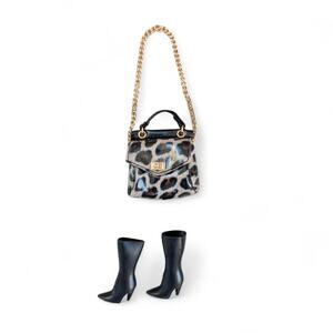 Zuru Mini Brands Leopard Print Mini Fashion Bag Gold Chain Handbag & Black Boots