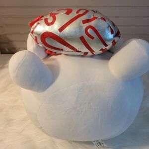 Adorable white bear plush with a red and green scarf. Comes with a silver candy cane accessory.new with out tag