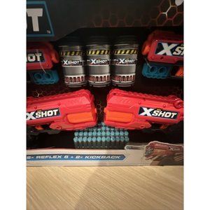 Zuru X-Shot 4 Gun Bundle - 2x Reflex 6 & 2x Kickback with 48 Foam Darts NEW