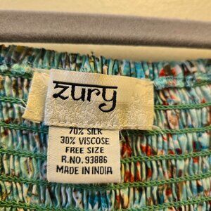 Zury Bohemian Style Dress Free Size Silk Smocked Bell Sleeve
