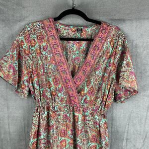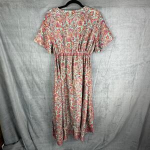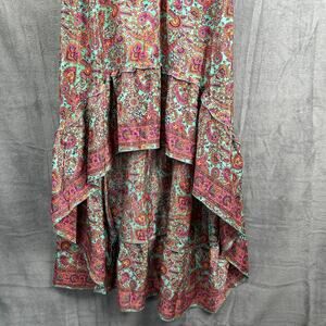 Zury Dress Womens One Size Pink Floral Silk Ruffle Hi Low Cottage Peasant Boho